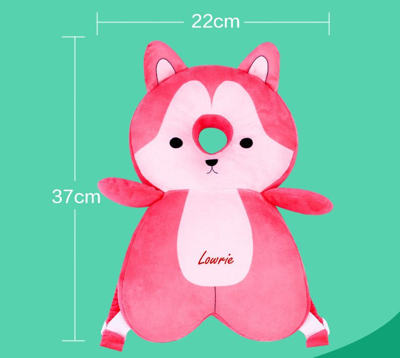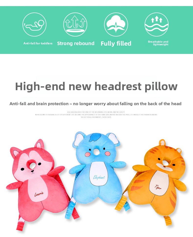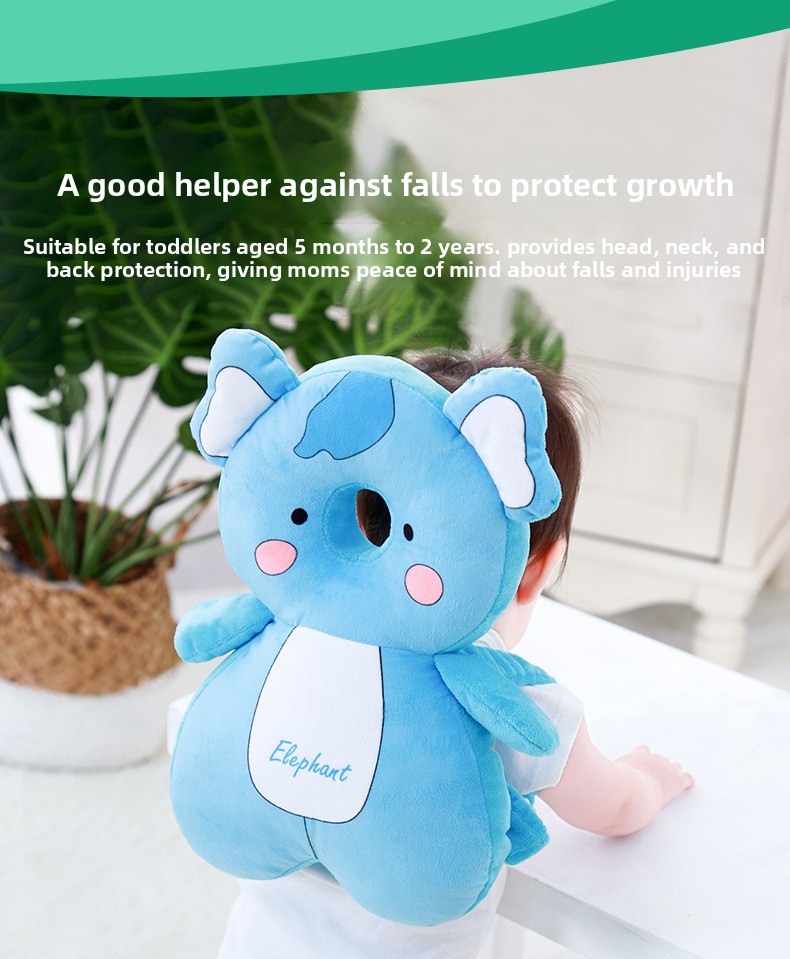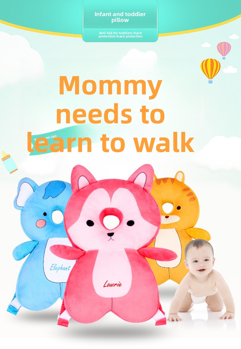 Anti-fall head protection pad designed to reduce impact and help protect toddlers from head injuries while learning to sit, stand, and walk.